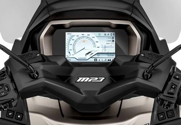 新款MP3 500的7英寸TFT显示屏将取代了上一代的双模拟表盘和LCD屏幕;全彩显示屏具有智能手机集成和GPS导航功能。