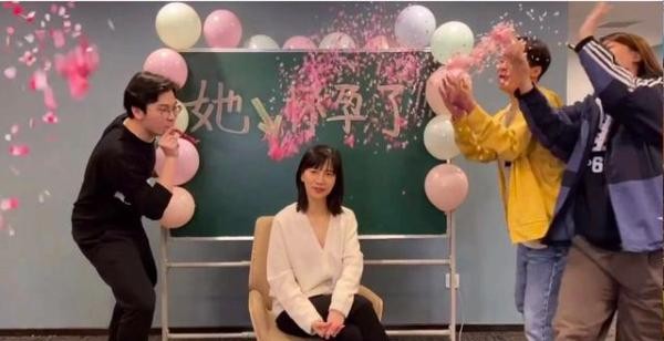 当她宣布完这句话工作室的同事也立即拥上前,送上蛋糕开心的与她一起庆祝,场面十分欢腾。
