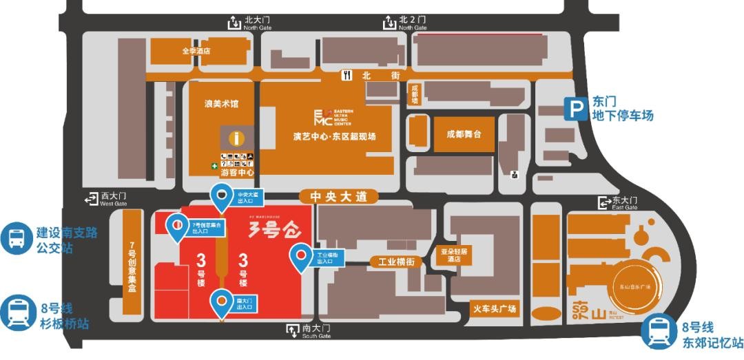 比如成都舞台、东山音乐广场、滑板公园、东舞台、成都墙、银杏广场、熊猫广场等等,这些不同形式的空间与场景,足以让东郊记忆成为绝佳的场地提供者。