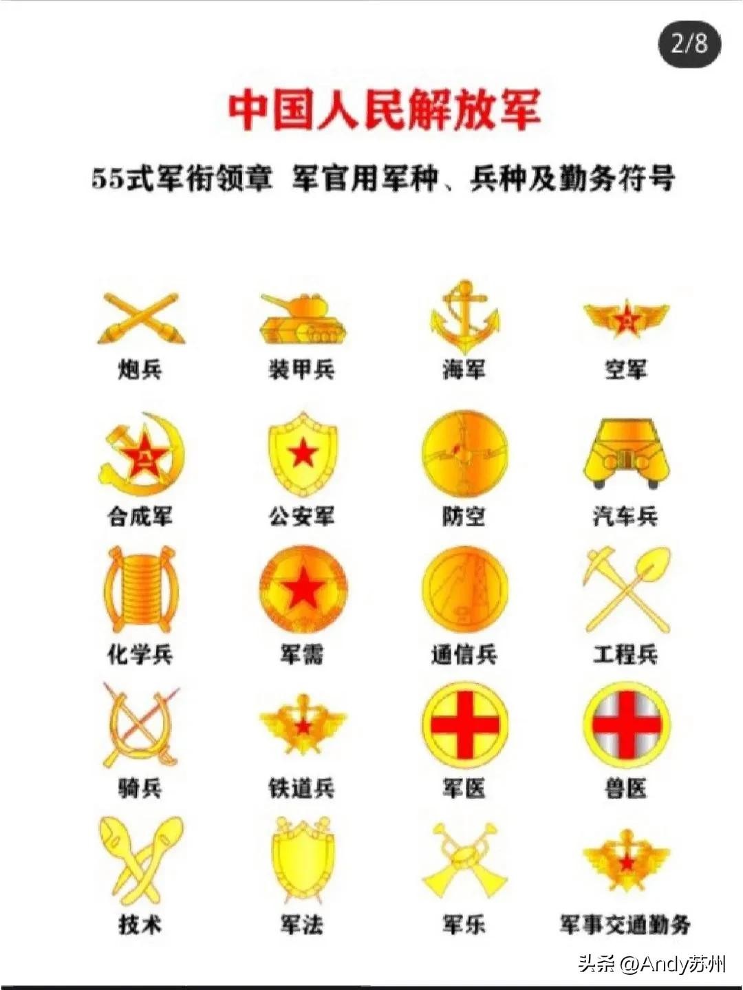 军衔兵种领章: