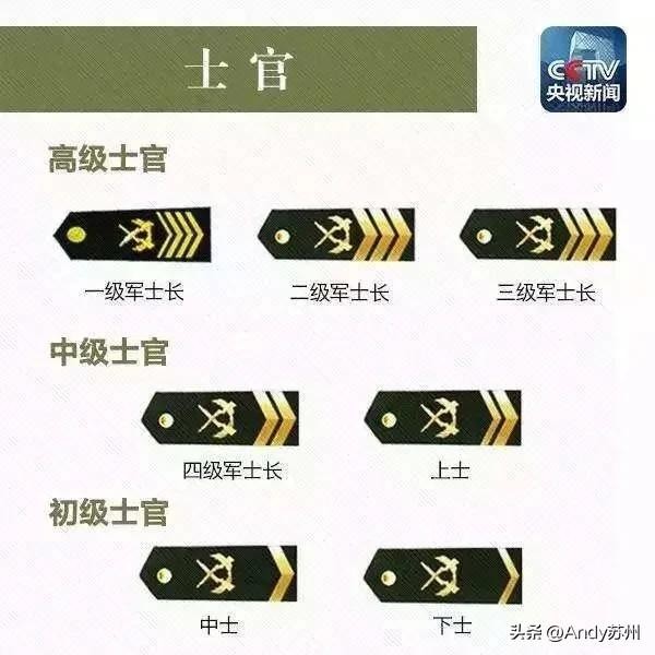士官则比较简单,分为上士中士下士三个等级,士兵则分为上等兵和列兵两个等级。