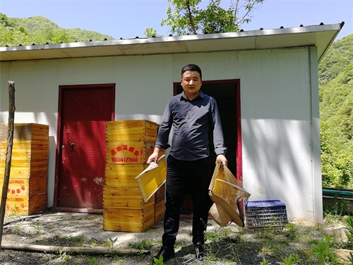 周正龙的儿子周松,此前是开挖掘机的,后来被周正龙叫回家养殖蜜蜂。刚接触养蜂,蜜蜂蜇人,周松常被叮得身上肿胀,“现在习惯了,被蜂蜇也不肿了。”