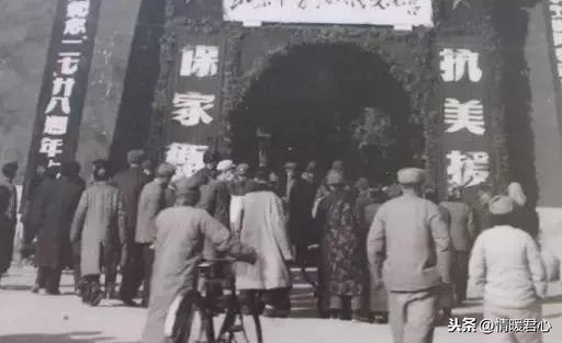 那个时候,“能不回家就不回家”成了新的宣传口号,干部们纷纷下到工农家庭给大家伙儿拜年。下图就是一位老书记在去农家拜年时,帮忙张贴春联的场景。