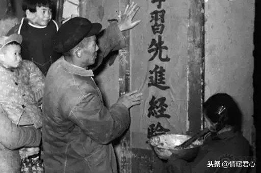 ▼ 新年了,“总把新桃换旧符”,“学习先进经验”是极具那个年代风采的横幅。