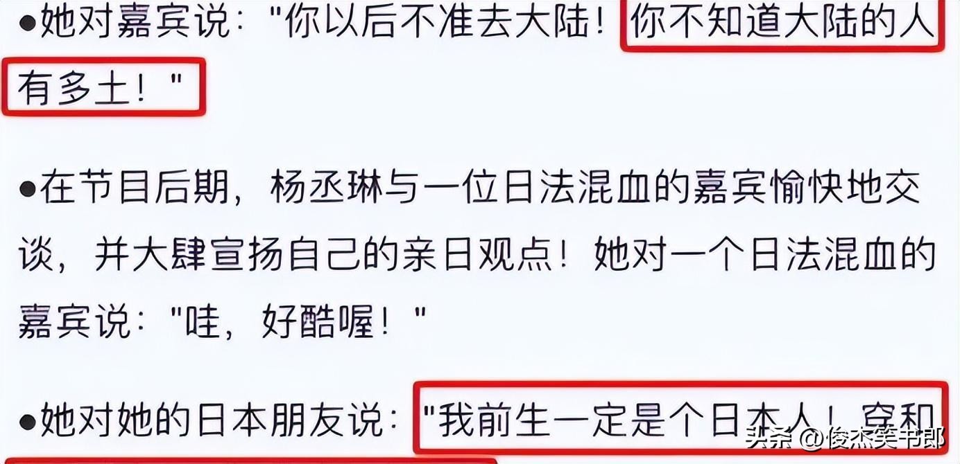 事实上,除却在她身上刚发生的黑河南的事情外,她早些年那些公然辱华的言论和台独、亲日的言行,才是更令人发指。