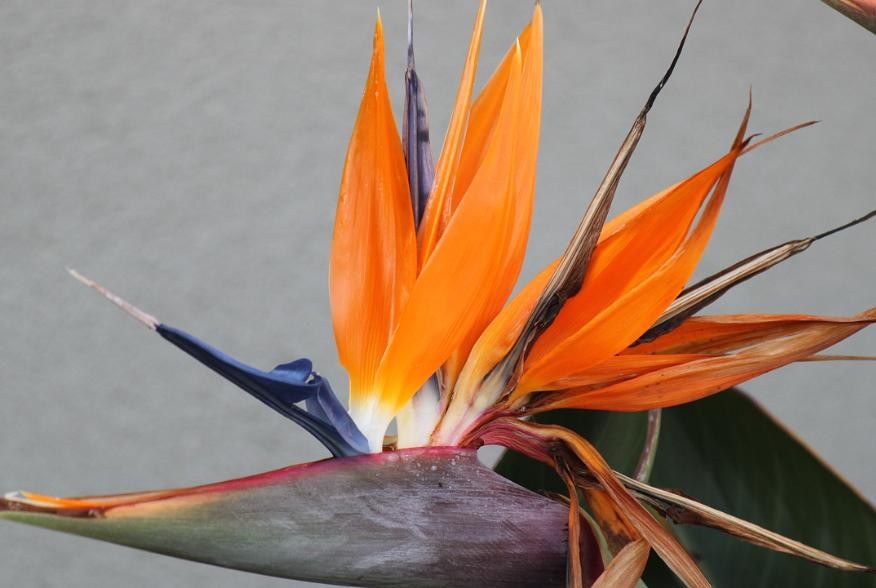 天堂鸟花卉的花朵颜色鲜艳,外观形状独特,整朵花呈橙色、红色、黄色等暖色系调,花瓣成舌状,排列成两列,动态展现了一只夸张的小鸟。而苞片较硬,外层有些皱褶,也像鸟类羽毛一样分明。