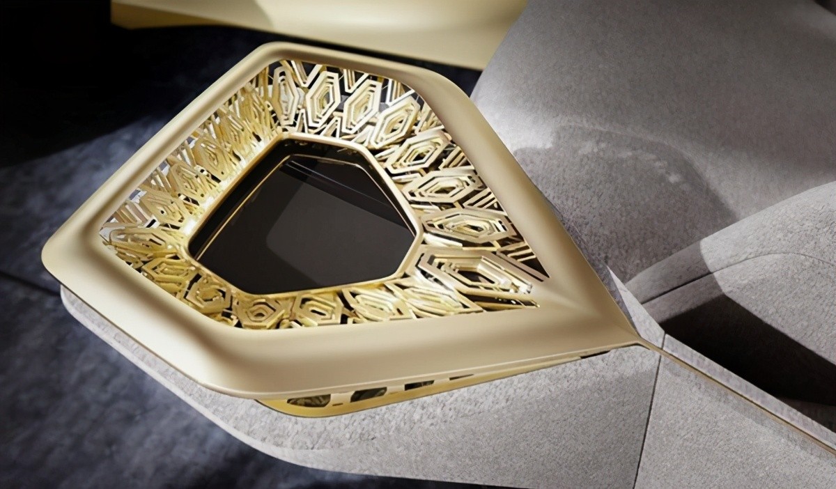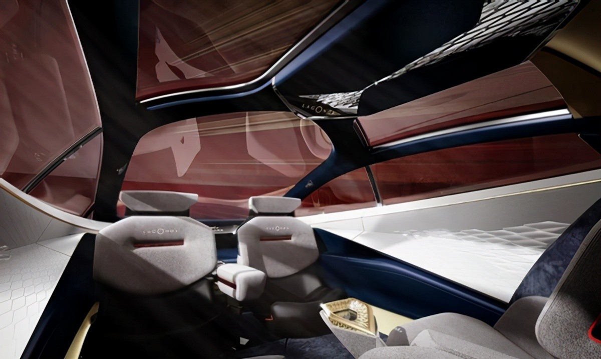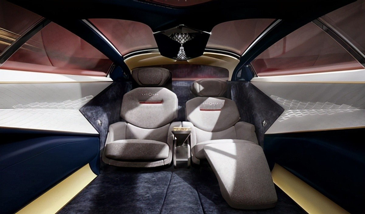 内饰的设计简约为主,并且采用了大量的羊绒材质,看起来很有质感。仪表盘的位置放在了方向盘中间,中控除了一个操控的旋转按钮其他并没有配备任何东西,有的仅仅是天马行空的设计。