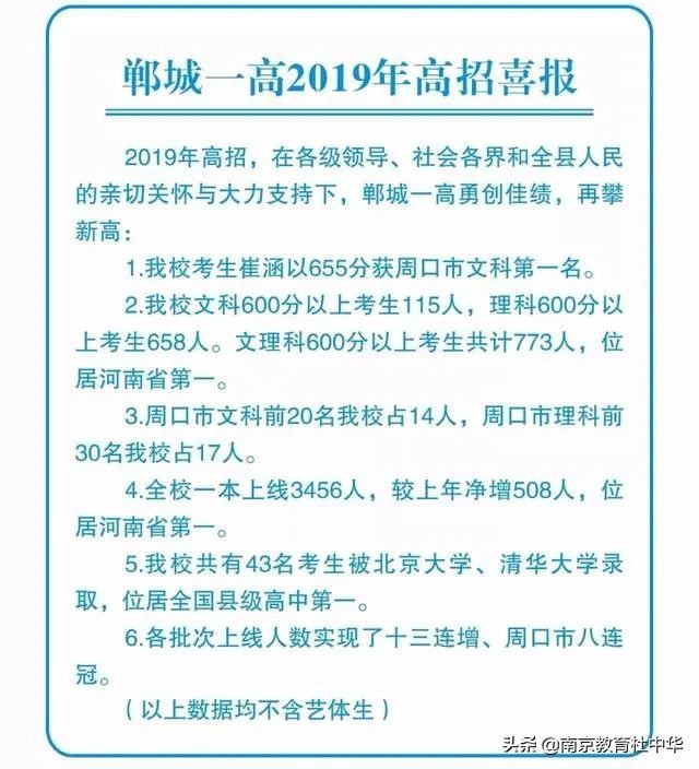 郸城一高近三年取得的高考成绩