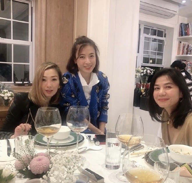 甘比现在在香港也是炙手可热的红人,毕竟因为刘銮雄的原因,甘比早已经成为了新一届的香港女首富,和香港名流都保持着要好的关系,照片中甘比坐在钟楚红和郑秀文的中间,年龄最小的她穿搭也最减龄,白色的衬衫搭配蓝色的针织开衫,很有学生气。