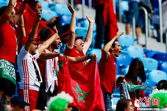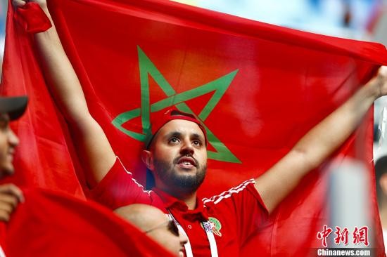 现场的摩洛哥球迷。 中新社记者 富田 摄