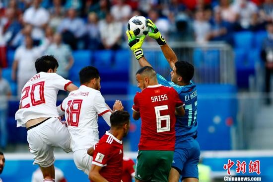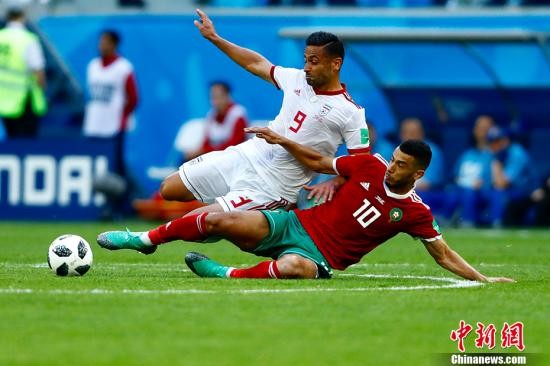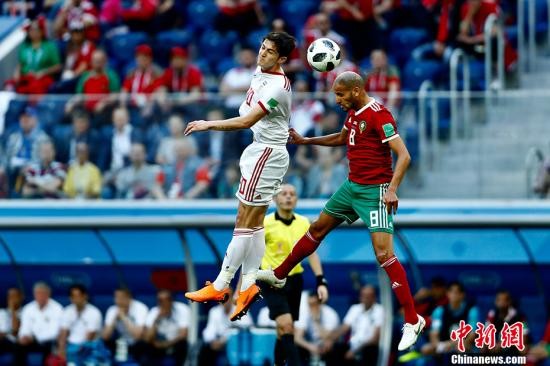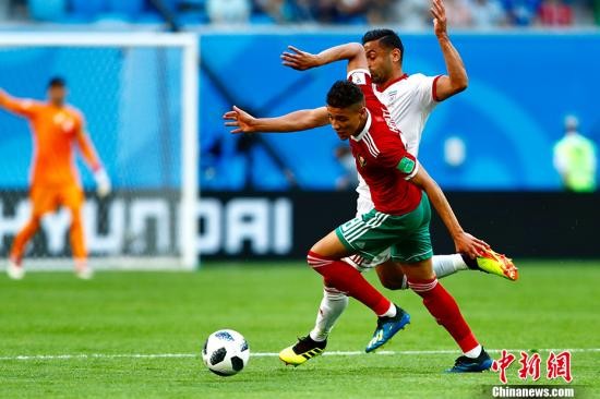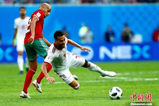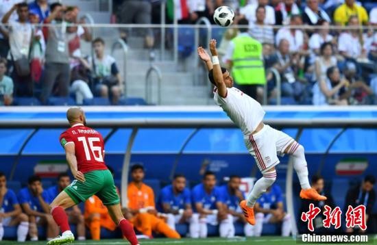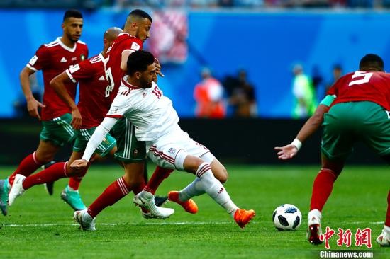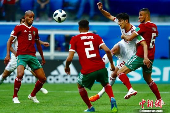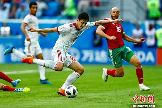 上半场,摩洛哥攻势如潮,数次威胁到伊朗队的球门,伊朗“梅西”阿兹蒙错失单刀,双方0-0打平。 中新社记者 富田 摄