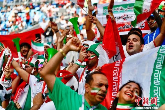 下半场,双方互有攻防,伊朗队凭借出色的防御化解险情,补时阶段,第93分钟,伊朗队前场任意球开出,摩洛哥球员乌龙头球攻入己方大门,最终伊朗1-0绝杀对手。 中新社记者 富田 摄