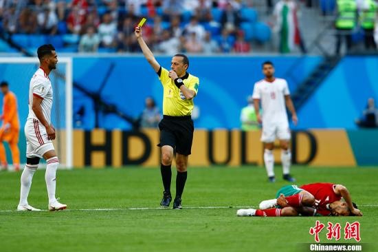 伊朗队员吃到黄牌。 中新社记者 富田 摄