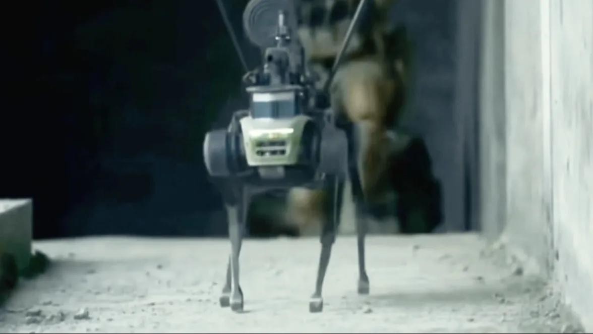 战斗机器狗,是无人化的作战单位,具备目标监测、敌我识别。自主路径规划和行进调整等作战功能,机器狗还可加装突击步枪,小型火箭弹等模块化装备,为士兵提供了远程情报支援和火力保障。