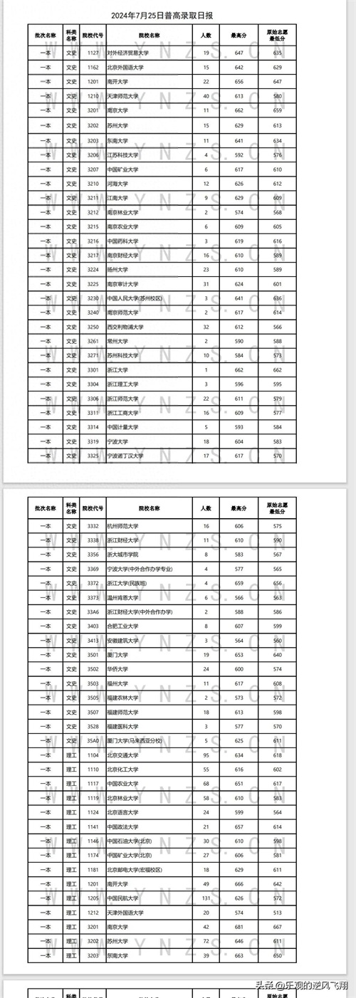 云南2024高考25日录取日报“一本”院校投档线公布 中科技最高699