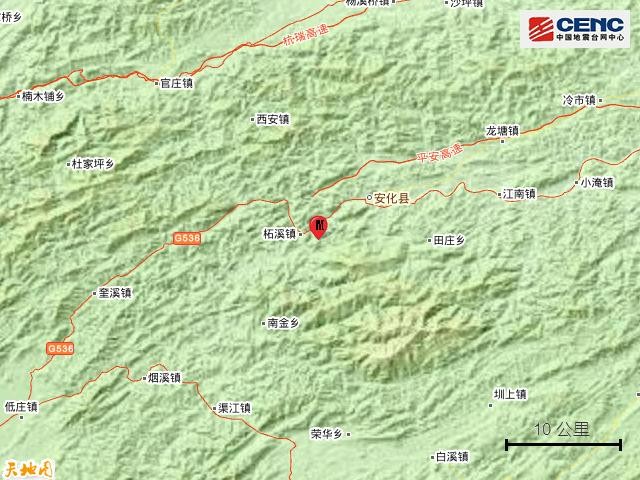 速报参数:据中国地震台网正式测定,9月17日15时20分在湖南益阳市安化县发生3.0级地震(矿震),震中位于北纬28.32度,东经111.14度。