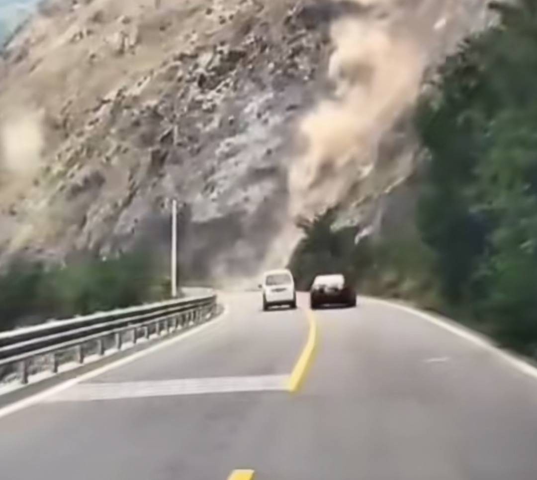 8月23日18时30分,四川省阿坝州茂县境内国道347线2695KM+500M(小地名:柳坪电站)路段发生山体塌方,造成道路中断,现场灰尘滚滚。