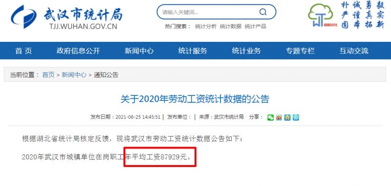 据武汉市统计局《关于2020年劳动工资统计数据的公告》显示,2020年武汉市城镇单位在岗职工年平均工资87929元,月平均工资约7327元,快来看看你的工资在什么段位?