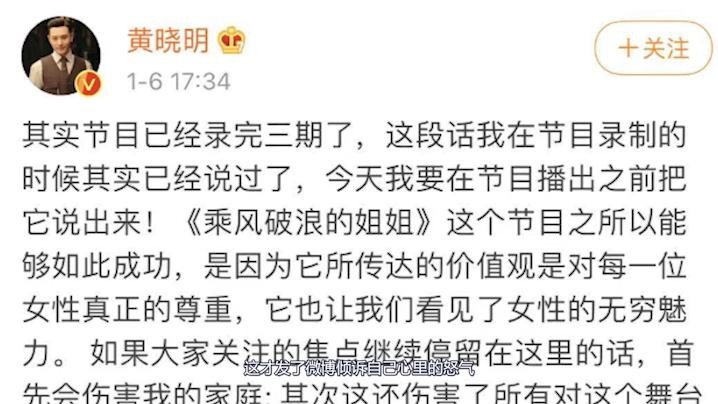随后黄晓明也发了条长文来支持自己的老婆