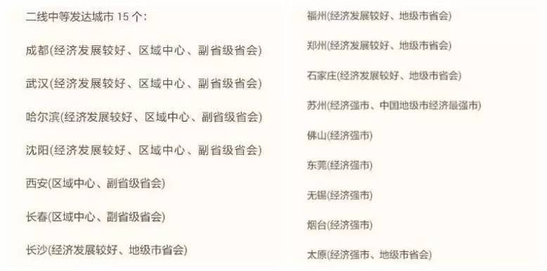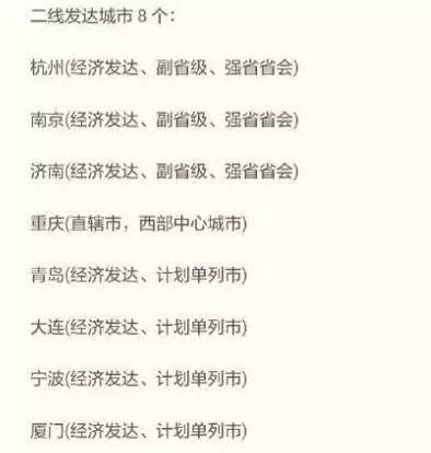 二线城市更是多达30个……它们又被详细的分成了8个二线发达城市