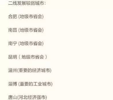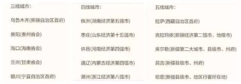 接下来就是N个三线城市,N+1个四线城市,N+2个五线城市……(不完全列表)