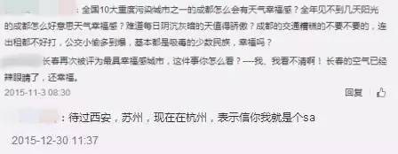 (全年见不到几天阳光的程度怎么好意思天气幸福感?交通也是糟糕的不要不要的……长春更差好嘛,空气都辣眼睛了还幸福……待过西安,苏州,现在在杭州,表示信你我就是个sa……)