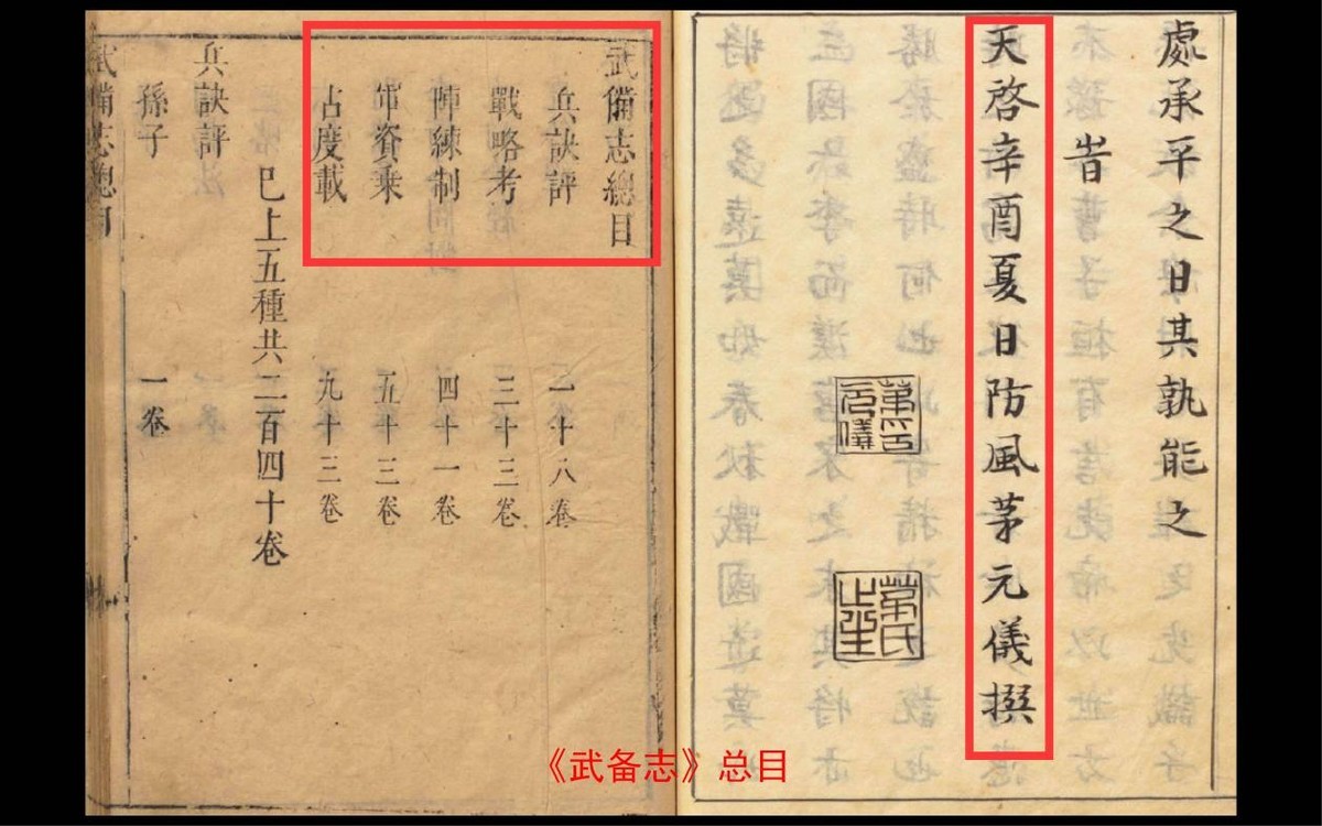 《武备志》的存在让我们了解400多年前明代的武备概况,它是中国古代字数最多的一部综合性兵书。研究明代武备的必读著作。由明代朝茅元仪编著,共240卷,200余万字,图738幅,明天启元年(1621)初版。清乾隆年间曾被列为禁书,道光(1821—1850)期间解禁,不过此时《武备志》所记载的装备相对西方已经落后很多了。清代再版多有改动,涉及胡虏内容或对清代评价不利部分多有删改。