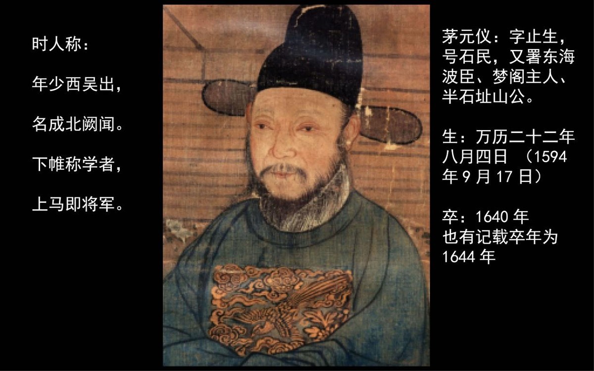 茅元仪:字止生,号石民,又署东海波臣、梦阁主人、半石址山公。