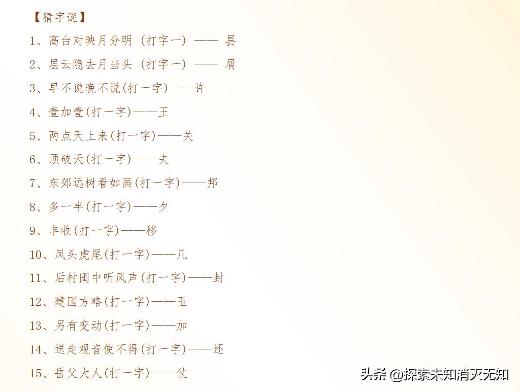 特精选了100条妙趣横生、涵盖各类知识的元宵节灯谜及其答案,邀您一同感受这份独特的文字游戏魅力,体验中华民族传统节日文化的博大精深。