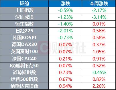 欧洲主要股指集体收涨,德国 DAX30 指数涨 0.07%,英国富时 100 指数涨 0.07%,法国 CAC40 指数涨 0.21%,欧洲斯托克 50 指数涨 0.07%。