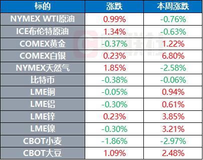 COMEX 黄金期货收跌 0.37%,报 1939.9 美元 / 盎司;COMEX 白银期货收涨 0.23%,报 24.28 美元 / 盎司。