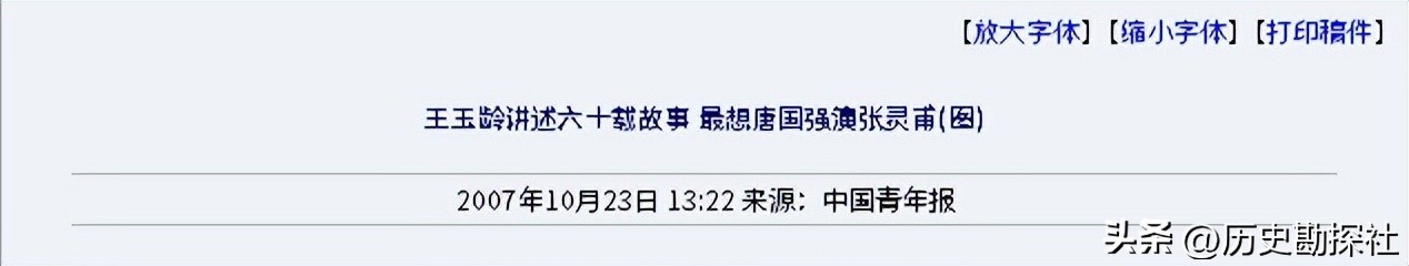 中国青年报——王玉龄讲述六十载故事 最想唐国强演张灵甫2007-10-23