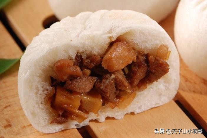三丁包子是江苏扬州名点,馅料由鸡丁、肉丁、笋丁制成。发酵所用的面粉洁白如雪,面软而韧,食不粘牙。包子皮吸收馅心的卤汁,味道鲜美。馅料咸中带甜,油而不腻,鲜香可口。
