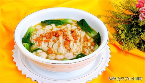 奥灶面是江苏昆山市的传统名吃,也是中国十大面条之一。奥灶面之所以成为有名的小吃,在于它的汤是采用青鱼的鱼鳞、鱼鳃、鱼肉和鱼的粘液一起煎煮出来的高汤。面条有嚼劲,汤味鲜美,成为了当地人最爱的小吃。