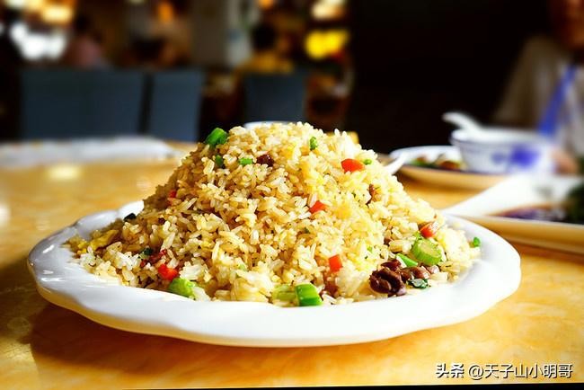 扬州炒饭是江苏扬州的传统小吃。作为炒饭界的王者,选料严谨、制作精细、加工讲究,而且注重配色,易学难精。采用米饭、火腿、鸡蛋、虾仁等食材炒制而成。炒饭颗粒分明,色泽明快谐和,配料多种多样, 诸味融和精陈,光润鲜香可口。