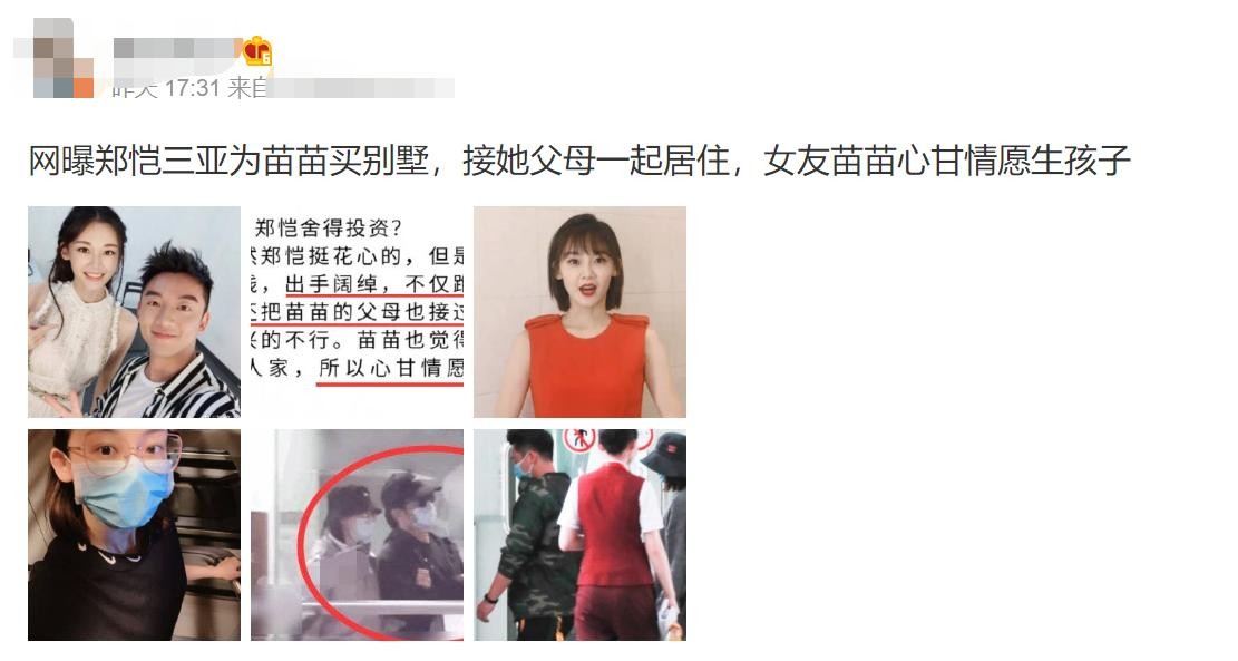 就在前一天,还有媒体爆料郑恺在三亚为苗苗购买了别墅,将会接她父母一起居住。