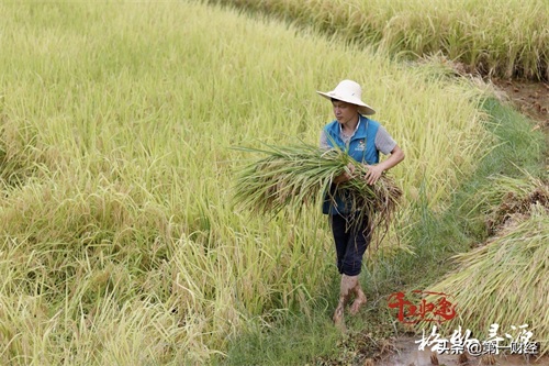 九月中旬,丰收节即将到来,杰村乡和平村一处掩在山坳里的稻田迎来收获的人们。几天前,山上的野猪偷袭此地,几处垮塌的稻田泄露了它的踪迹。为避免野猪再次破坏,并避开即将到来的暴雨,村民王室荣一家得赶紧将田里的稻谷收了。