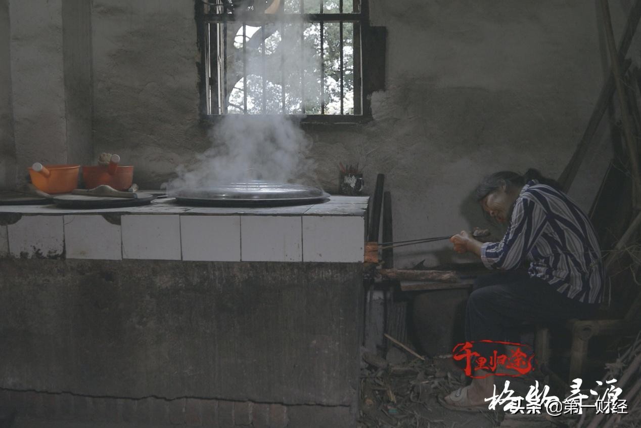 奶奶在灶膛边为即将赴清远上学的陈青华制作鱼丝。