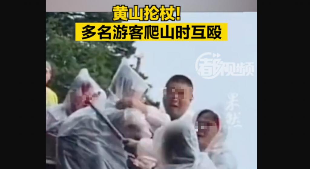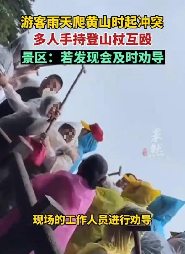 7 月 23 日,网友爆料称,下雨天登黄山的途中,有多名游客发生冲突,持登山杖互殴。