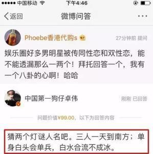 而且,一直有传闻,任泉是个gay。中国第一狗仔卓伟曾出谜让网友猜同性恋,网友猜测是秦昊、任泉。