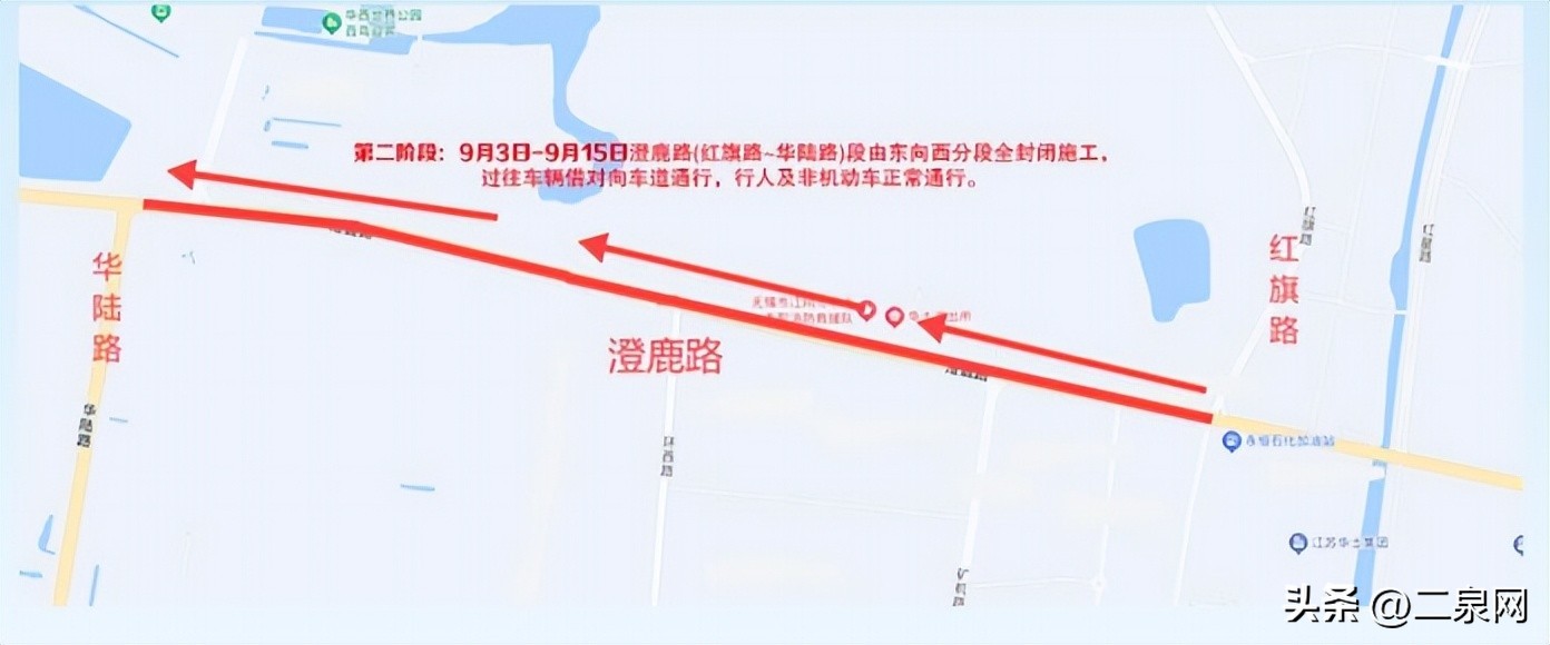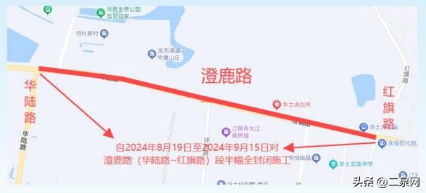因2024年无锡市普通国省道养护工程(S259)工程施工需要,自2024年8月19日至2024年9月15日,对澄鹿路(华陆路至红旗路段)进行半幅道路封闭施工。