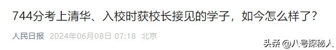 人民日报——744分考上清华、入校时获校长接见的学子,如今怎么样了?
