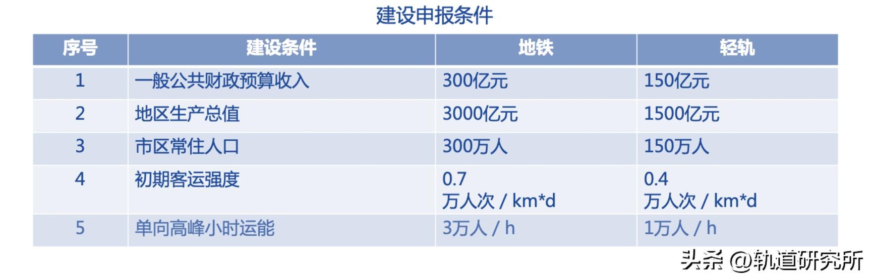 地方财政收入和GDP指标:52号文将地方财政收入、GDP指标要求分别提高到原有规定(2003年81号文)的2倍以上,即150亿地方财政收入和1500亿GDP。提高标准,以确保有足够的财力来支撑轻轨的建设和运营。