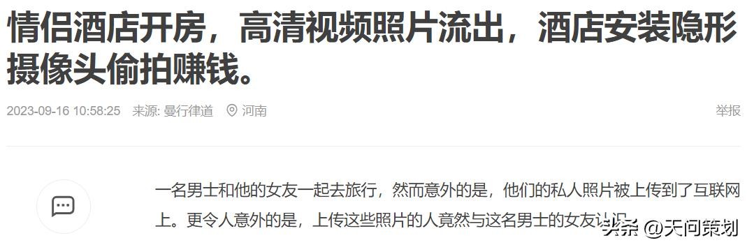 在出外旅行当中,有一大批是情侣出行,这无可厚非,爱情有享受浪漫出行的权利。可是一些黑色产业,似乎也喜欢紧盯着这一类出行的人群,而酒店恰是这类黑色产业链的重灾区。