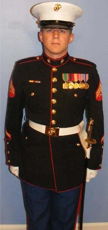 左起:海军陆战队作战服、士兵礼服、军官常服、军官晚礼服