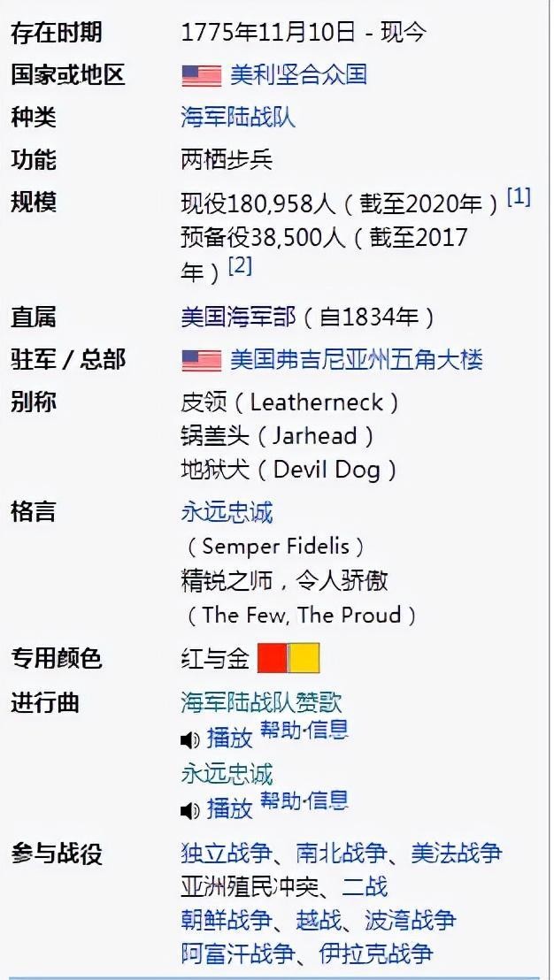 轻量化头盔(LWH)增强型战斗头盔(ECH)高切增强型战斗头盔(High Cut ECH)。由Gentex设计,采用ACH ARC导轨、Lux Pux悬挂系统等设计。MICH-2000头盔(特种作战部队及具备特种作战能力部队使用)Ops-Core FAST Ballistic/Maritime头盔(特种作战部队使用)改进型模块化战术背心(IMTV)III代携板背心(Plate Carrier Generation III,简称PC GenIII)[39]。由FirstSpear设计[40],设有8种正背ESAPI板尺寸(XS至XL,以及新的XS-Short、S-Short和S-Long)、3种侧围尺寸(S、M、L)及2种ESAPI侧板尺寸(6×8英寸及新的6×6英寸),且侧板可向上下前后调整,以贴合更多陆战队员体型。PC GenIII可依需求组装成战术配置(Tactical Configuration)、低轮廓配置(Low Profile Configuration)及负重配置(Load Bearing Configuration),当中负重配置组装自低轮廓配置以外的部件,并设计为穿着在低轮廓配置PC GenIII外。PC GenIII将取代IMTV及旧版PC。PC GenIII除陆战队常用的狼棕色,亦有特别为如宪兵等部队采用额外附有软式抗弹内衬侧围的黑色版本(陆战队称此为执法版)。Crye Precision JPC(特种作战部队使用)3M Peltor Comtac III抗噪耳机/通讯系统(特种作战部队使用)M9刺刀