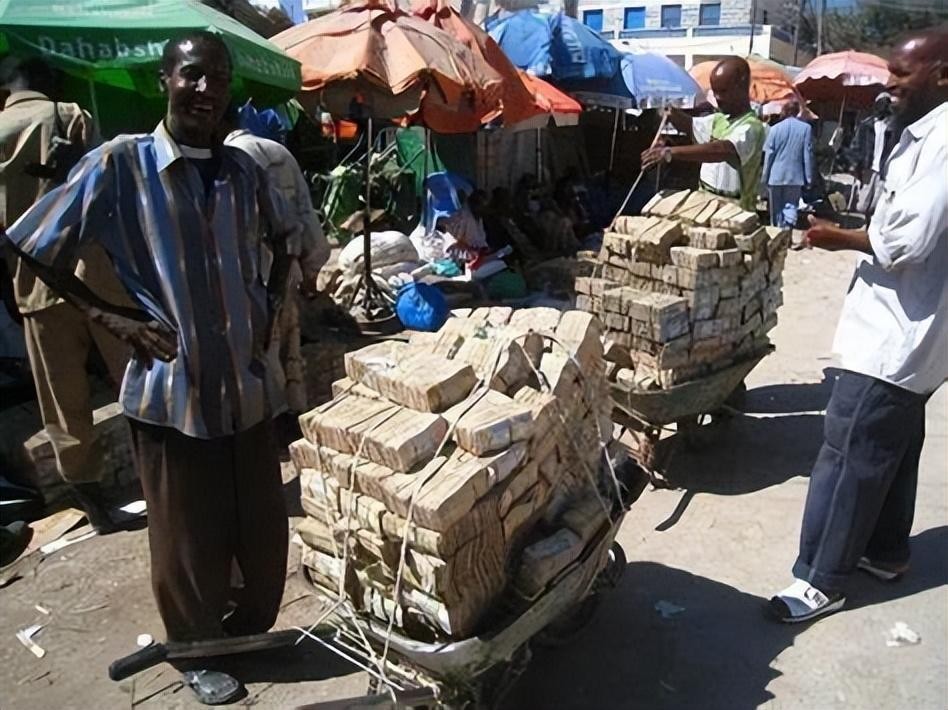 当时的津巴布韦人真是应了那句话,穷的只剩下钱了。在街上你能看到当地人推着一车一车的纸币,只为在市场上买点菜或者去商店买卷卫生纸,坐一次公交需要3万亿元,买一个鸡蛋要上万亿,买东西是大家都懒得数钞票了,干脆就把钱论斤称,有的商家甚至连称都懒得称了,就用手大概量一下钱的高度,估算一下钱的价值,反正多个几千亿少个几千亿都不值得去计较了。