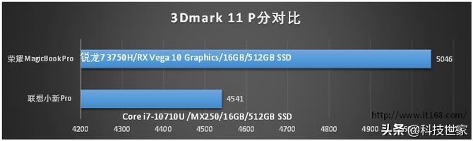 针对GPU我们通过3DMark 11 Performance来实际对比一下。在锐龙7 3750H+Vega 10的组合中,P分领先优势明显,达到了11%,其实这也在意料之中。