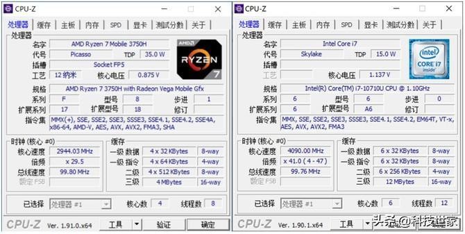 还是先从处理器说起,AMD锐龙7 3750H和十代Intel Core i7-10710U,从规格上看,两者也并不十分对等,锐龙7 3750H采用了12nm工艺,4核8线程,频率为2.3GHz~4.0GHz,TDP为35W;而Core i7-10710U依然是14nm工艺,6核12线程,频率为1.1GHz~4.7GHz,TDP15W。这两款处理器同样都是搭载在旗舰级的轻薄本里,应对日常的办公无压力。