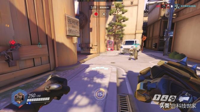 2.《守望先锋》无边窗口化,1080P分辨率,60Hz,垂直同步关闭,图像质量中。CPU功耗15W,占用41%,温度83°;显卡占用99%,温度83°,频率1200MHz。FPS 70。